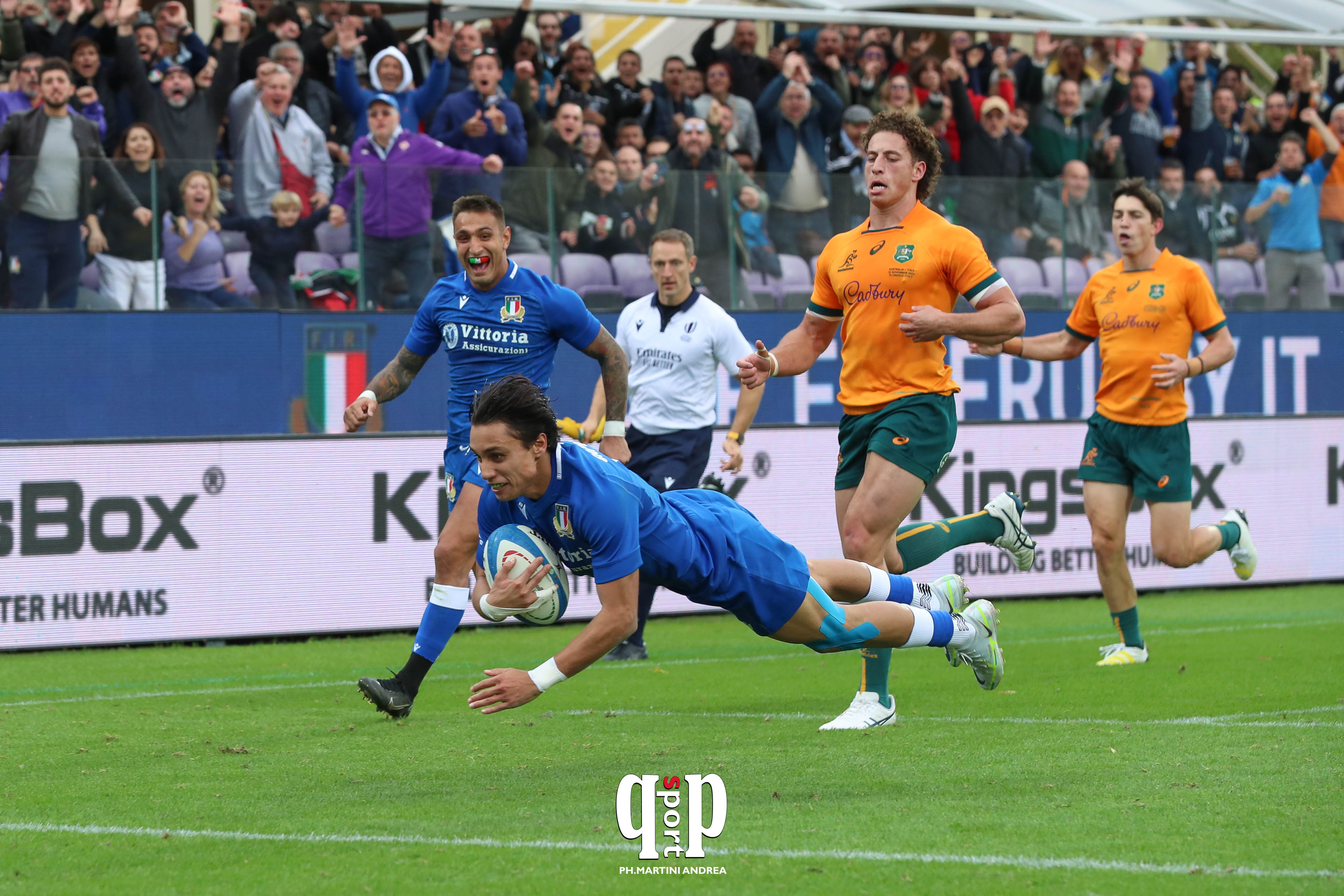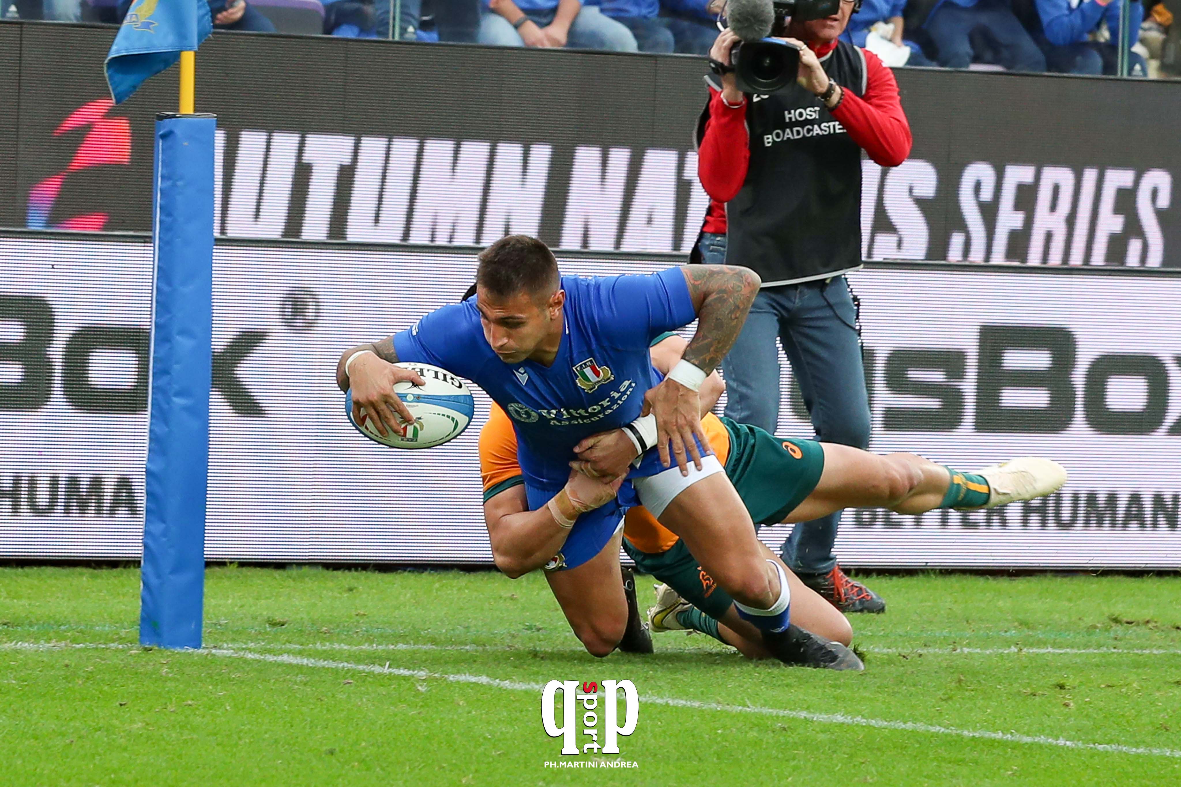 Solidità mentale, lucidità difensiva, cinismo in attacco: l’Italia doppia il largo successo con Samoa della scorsa settimana vincendo per la prima volta nella storia contro l’Australia al termine di una gara al cardiopalma, con gli ospiti a subire nettamente per larghe fasi del gioco ma capaci di approfittare dei 4 calci sbagliati dagli Azzurri per restare agganciati al match fino all’ultimo minuto, quando la trasformazione dopo la meta di Neville a tempo scaduto avrebbe infranto ingiustamente il sogno degli oltre 20.000 di Firenze.