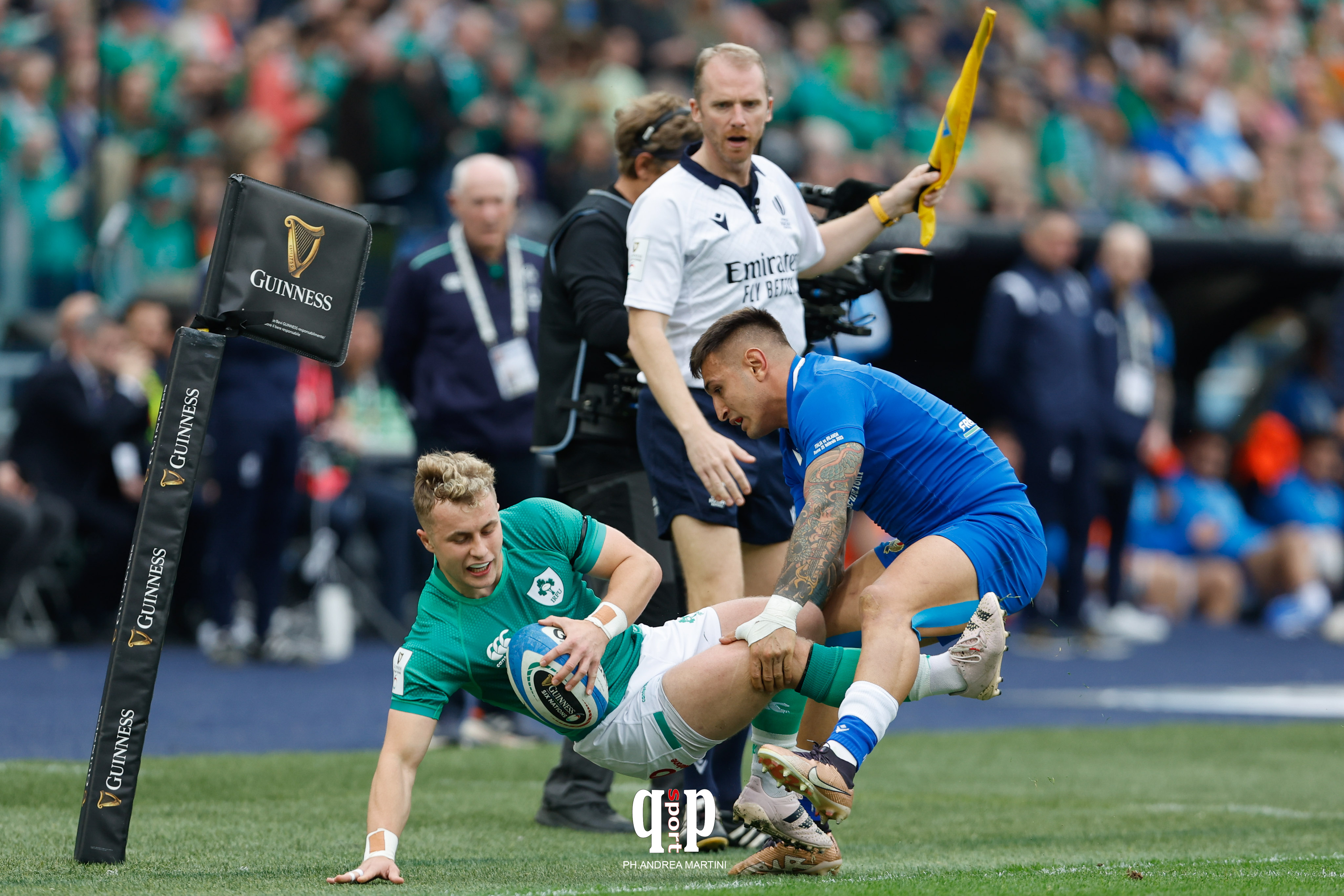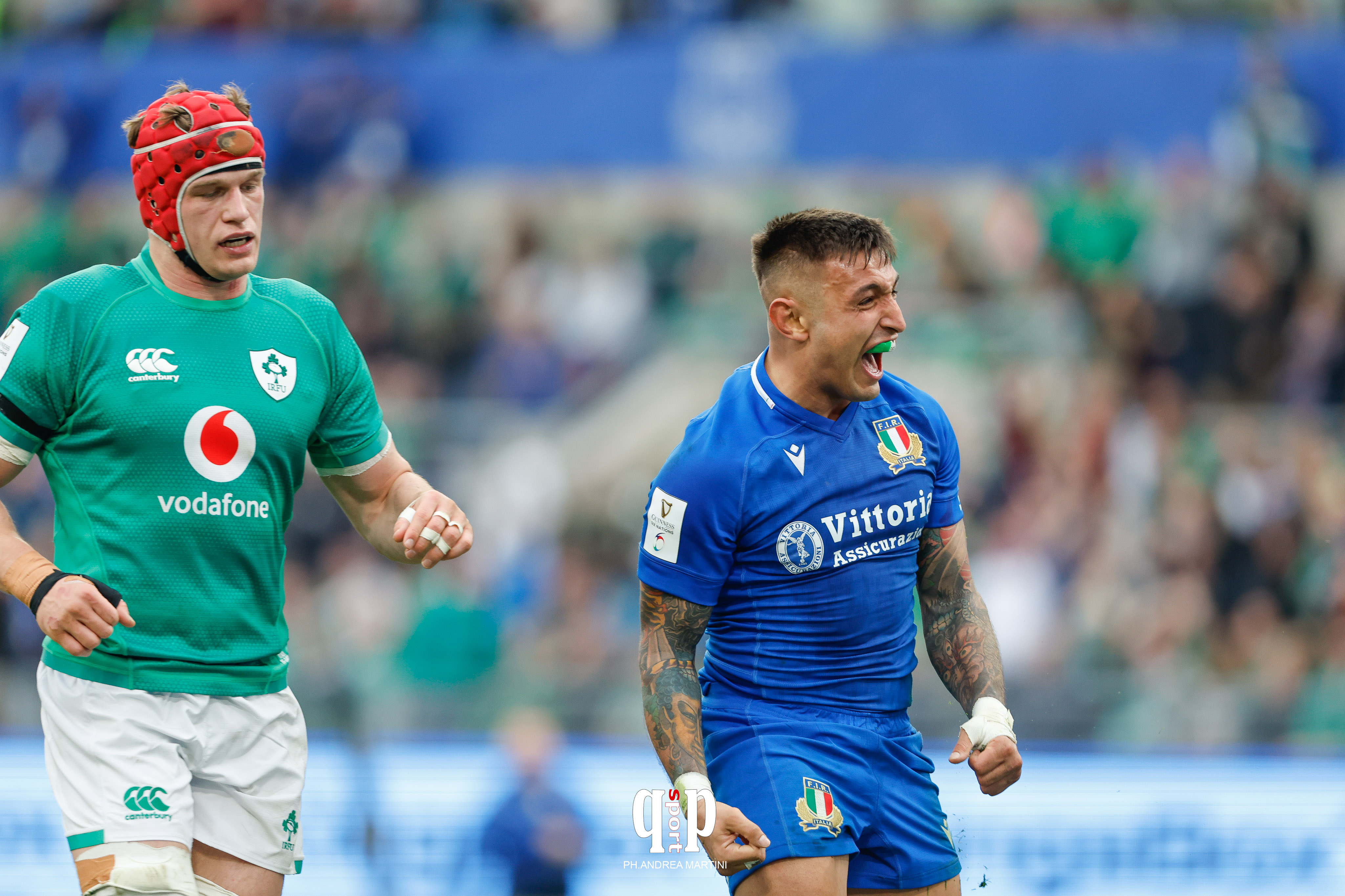 ITALIA v IRLANDA 20-34 (p.t. 17-24)Marcatori: PT 3’ m. Ryan, n.t. (0-5); 8’. m. Varney, t. Garbisi (7-5); 13’ m. Keenan, t. Byrne (12-7); 18’ c.p. Garbisi (12-10); 20’ m. Aki, t. Byrne (10-19); 35’ m. Hansen, n.t. (10-24); 40’ m. Bruno, t. Garbisi (17-24). ST 56’ c.p. Garbisi (20-24); 65’ c.p. Byrne (20-27); 71’ m. Hansen, t. Byrne (20-34)