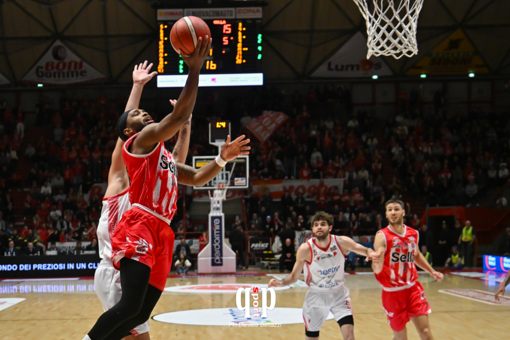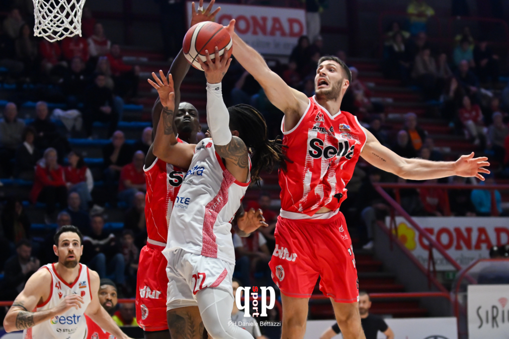 SELLA CENTO: Scarponi 2, Tanfoglio, Piazzi ne, Conti 17, Berdini 13, Devoe 5, Montano 16, Guerrieri 3, Davis 18, Fall 6. All.: De Paolantonio