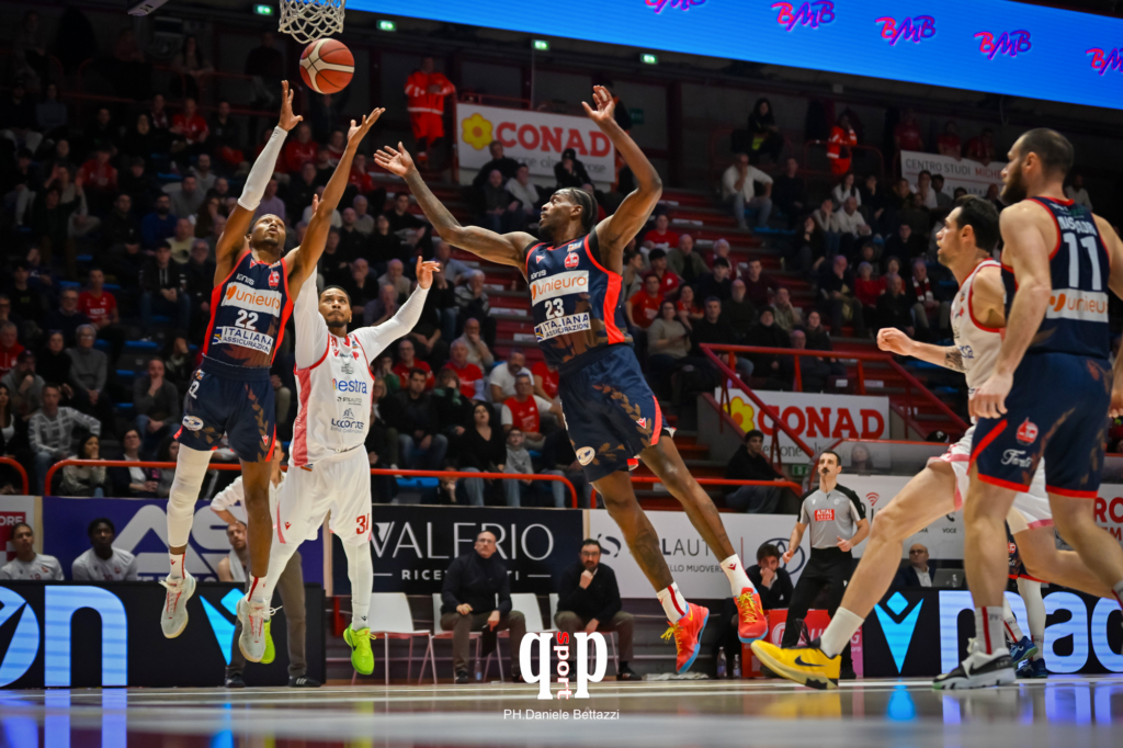 UNIEURO FO: Gazzotti 4, Tavernelli 13, Masciadri 7, Berluti ne, Mustapha ne, Aradori 10, Harper 12, Stephens 8, Pinza, Pepe 19. All.: Martino