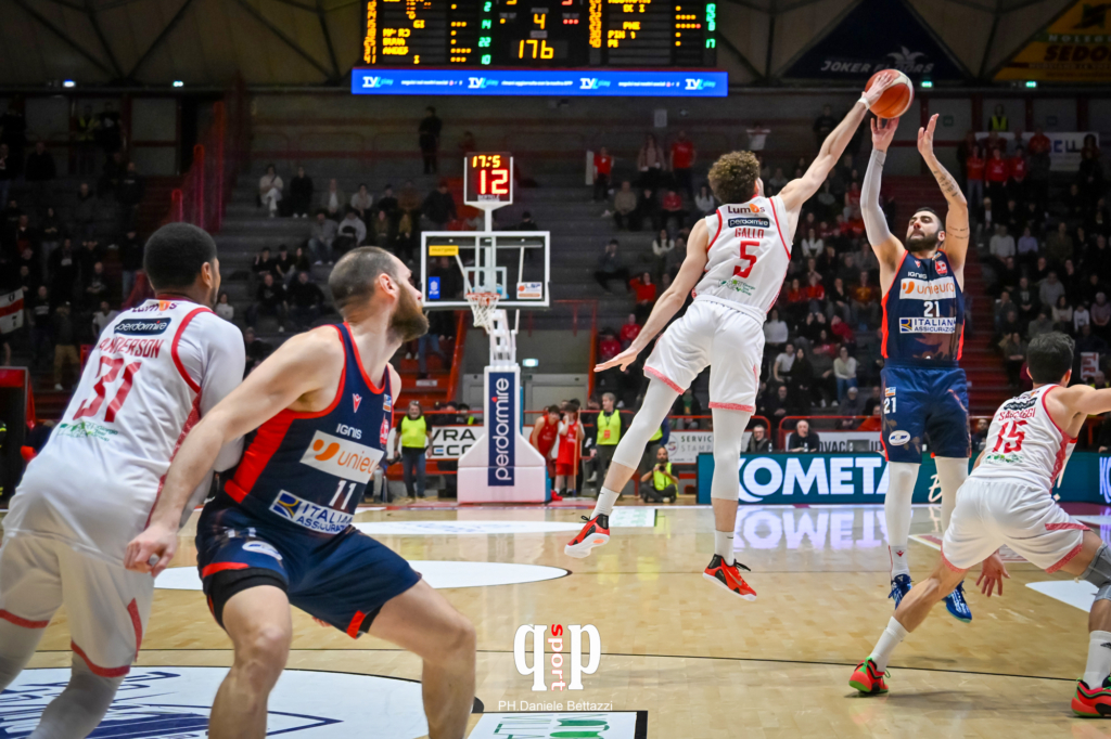 SECONDO TEMPO Forlì, già priva di Gaspardo alla vigilia e con Harper non al top, accusa problemi di falli e allora l’Estra (3 penalità per Gallo in apertura di terzo periodo) prova a scappare di nuovo (50-42 di Buva) che arrotonda al 56-48 del 28′ che porta al finale di quarto con l’unica bomba di serata di Pippo Gallo rintuzzato da Aradori per il 59-50 del 30′.