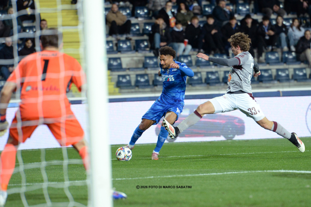 Al 77’ dopo un laterale a favore dell’Empoli ed una respinta degli ospiti, è Saporiti che si coordina e calcia da fuori ma il bel gesto tecnico è troppo frontale e il primo uomo della Reggiana trattiene senza problemi.