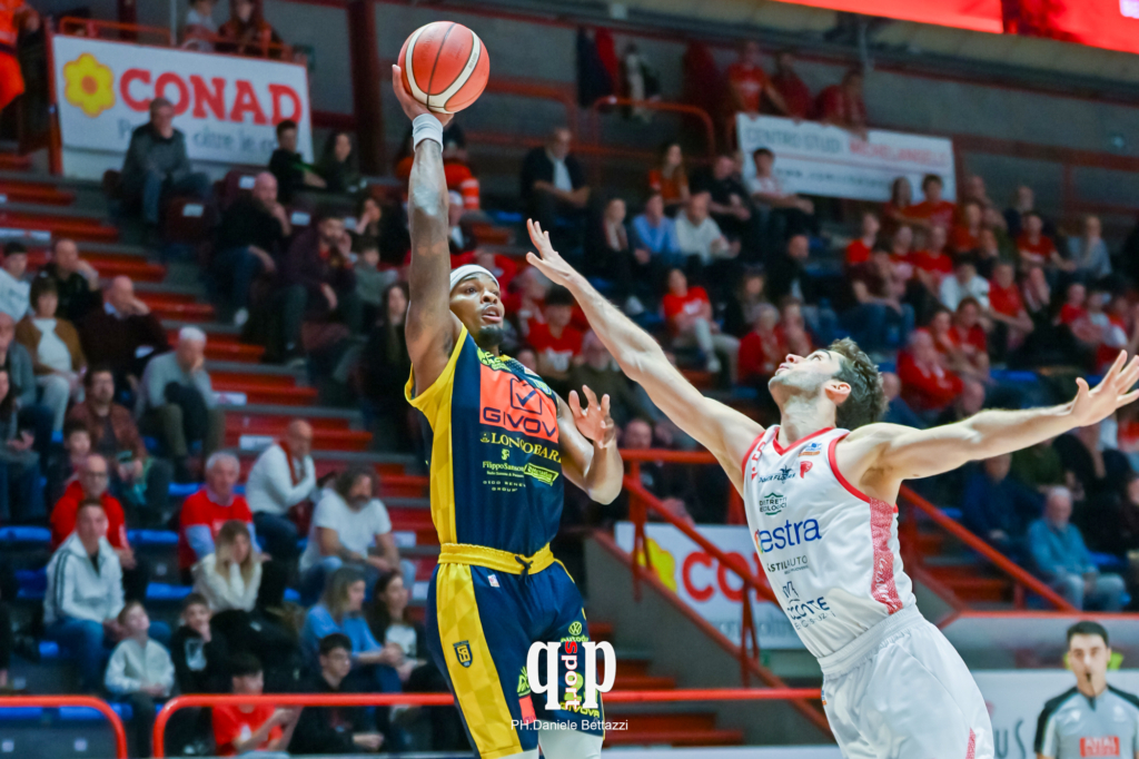 L’Estra sfrutta un super primo tempo di Gabriele Stefanini che bombarda da tutte le posizioni e, con la prima tripla di Anderson, sigla il 35-23 del 13′. Scafati si rianima con 6 tiri liberi di Allen ma due bombe consecutive di Zanotti danno nuovo slancio all’Estra (45-33) che porta, poi, al 48-37 del 20′ con Walker.