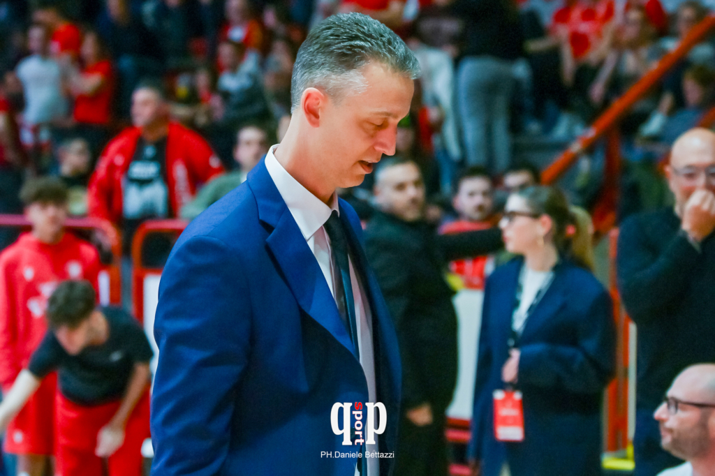 NOTE: Spettatori: 2082 (1423 abbonati, 659 paganti). Usciti per cinque falli: Mollura (S). Fallo tecnico: Iannuzzi (S) al 19’25”, Gallo al 35’30”. Fallo antisportivo: nessuno.