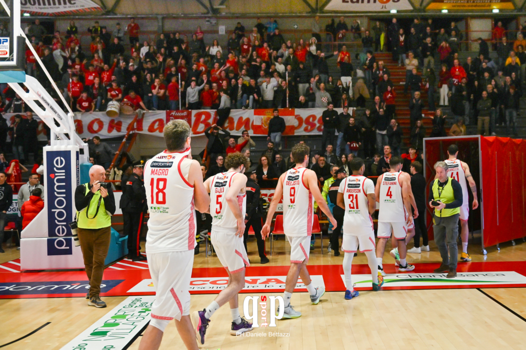 NOTE: Spettatori: 2045 (1423 abbonati, 622 paganti). Usciti per cinque falli: Zanotti. Fallo tecnico: nessuno. Fallo antisportivo: Zanotti 30’48’’.