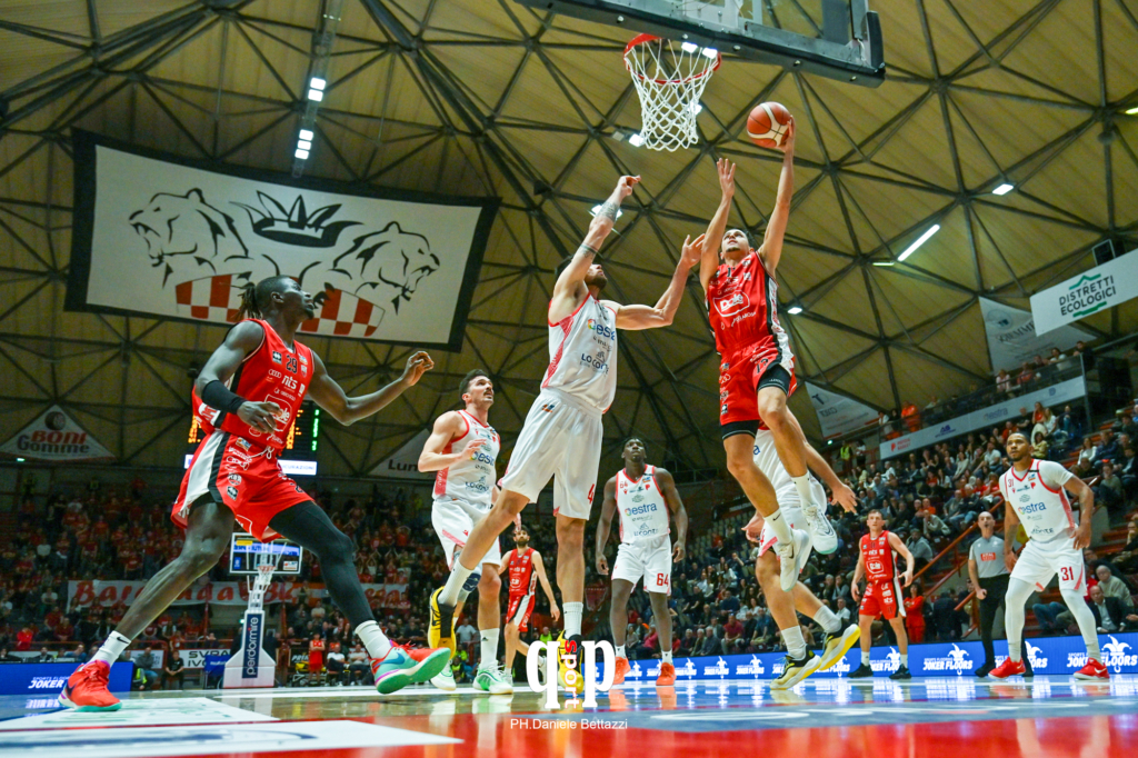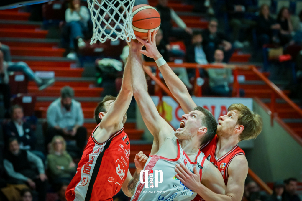 Un’Estra Pistoia Basket 2000 ancora una volta col coltello tra i denti cede infine alla LumoSquare per 84-90 alla Dole Basket Rimini, nella gara infrasettimanale valevole per la trentacinquesima giornata del campionato di Serie A2 LNP. Una gara in cui i ragazzi di coach Pete Strobl hanno saputo giocare alla pari per larghissima parte della contesa contro una vera big della lega. Lo dimostra il fatto che per ben tre quarti le distanze tra le due squadre sono state estremamente ridotte. Un grande approccio nel primo tempino, dove i biancorossi hanno saputo prendersi l’inerzia e mettendo al muro una Rimini che ha saputo rispondere sempre colpo su colpo. Nel quarto finale, poi, gli ospiti sono stati in grado di ampliare il margine, rispettando la propria nomea di squadra ad alto coefficiente di realizzazione dalla lunga.